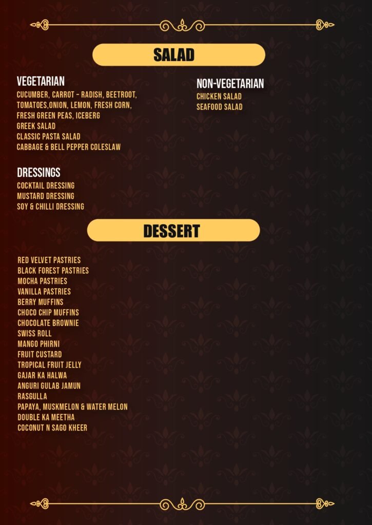 The menu shown here is for reference only and there may be changes in items served at the restaurant.