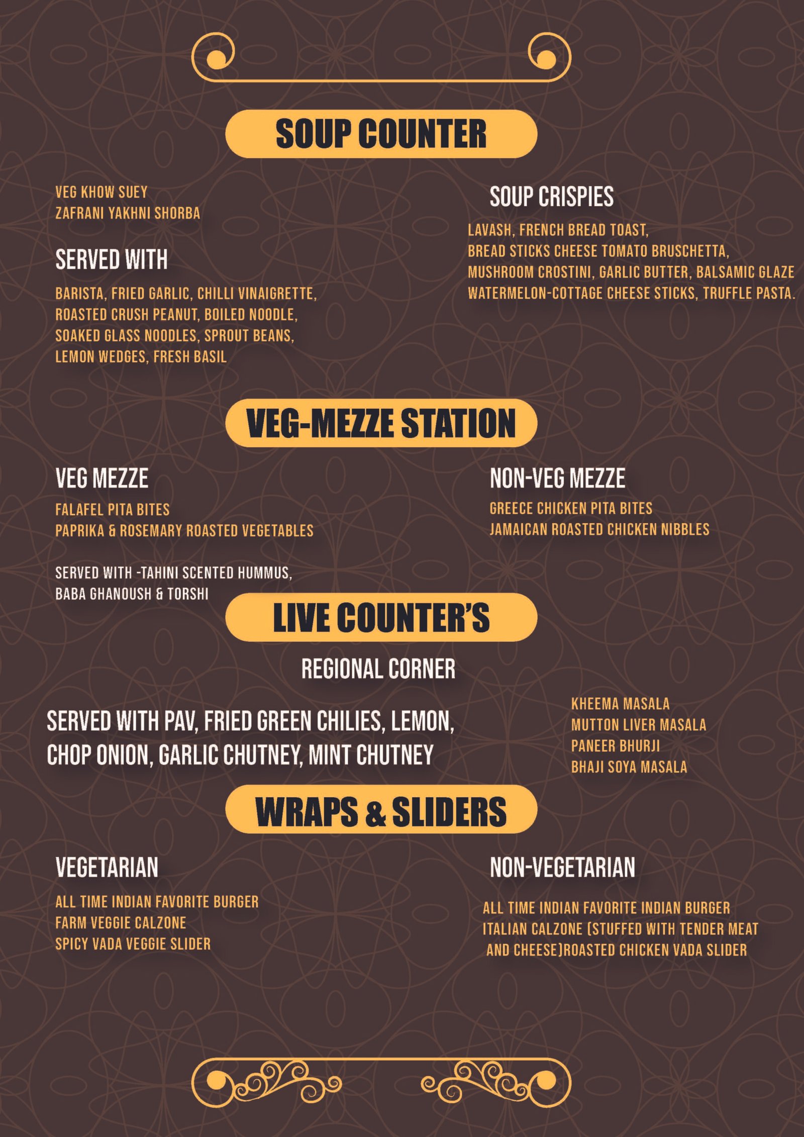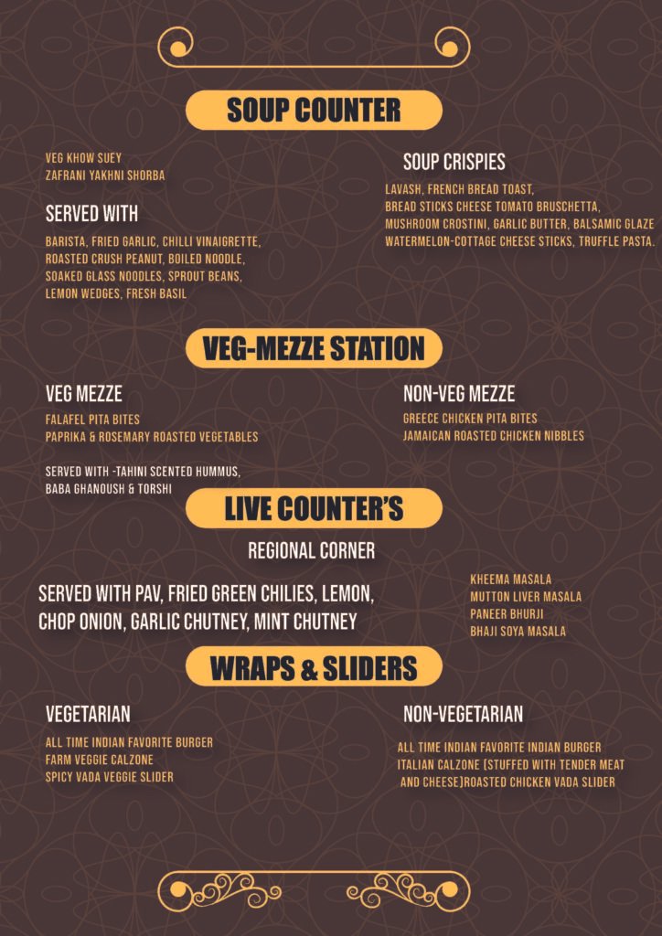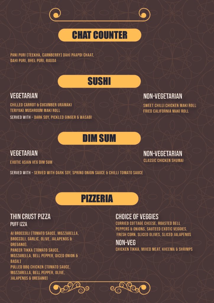 Interactive stations let you personalize every bite from custom pizzas, pastas, burritos, vitnamese wraps and chaats to gourmet desserts that touch your soul and the finest of Baskin Robbins collection.