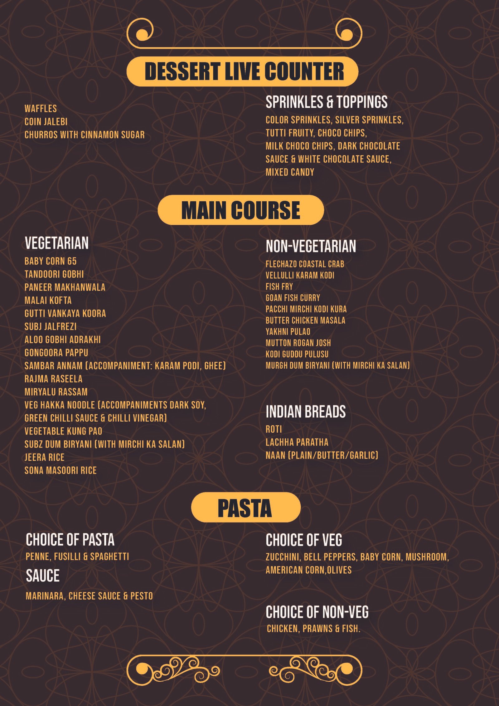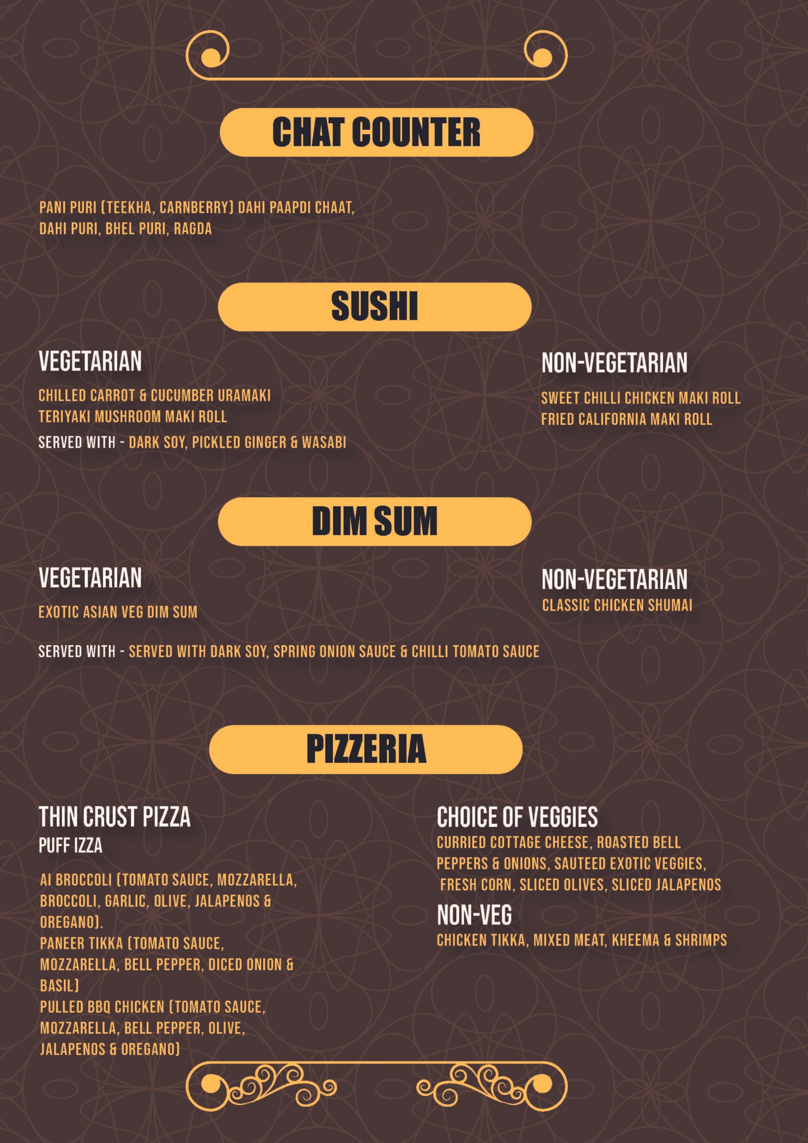From sushi, kebabs, and Yakhani Pulao to pasta and biryani, we bring you a lavish spread of global and regional favourites, redefined for the modern palate.