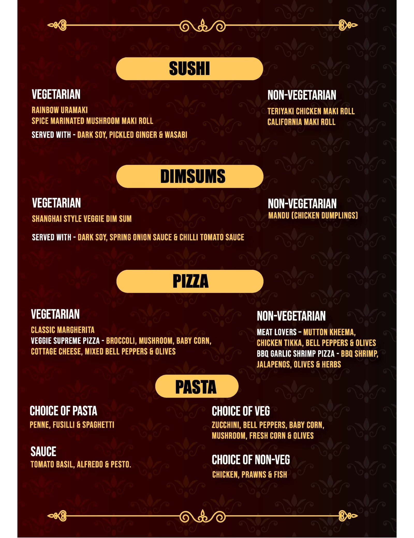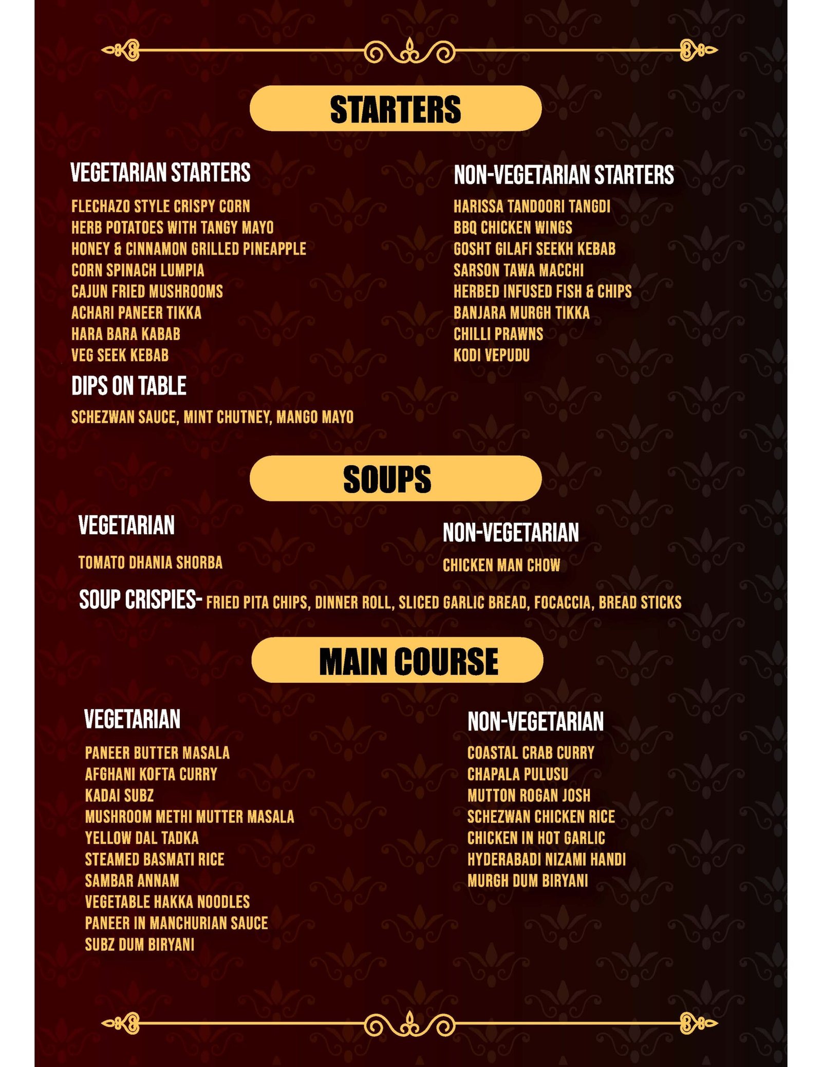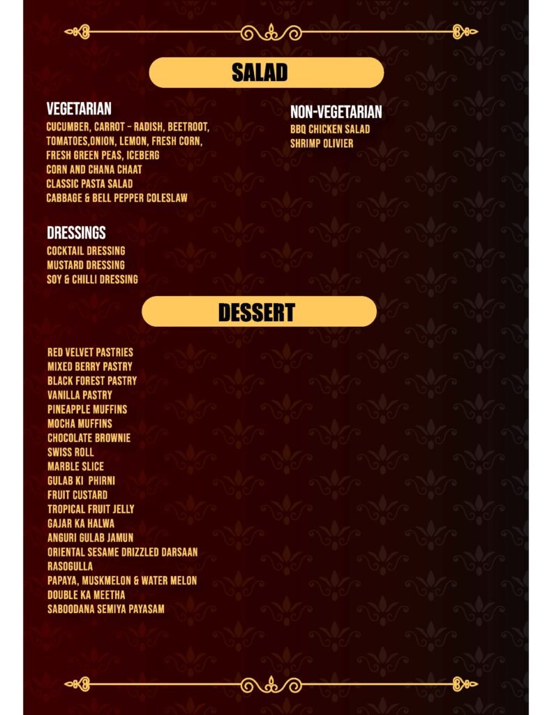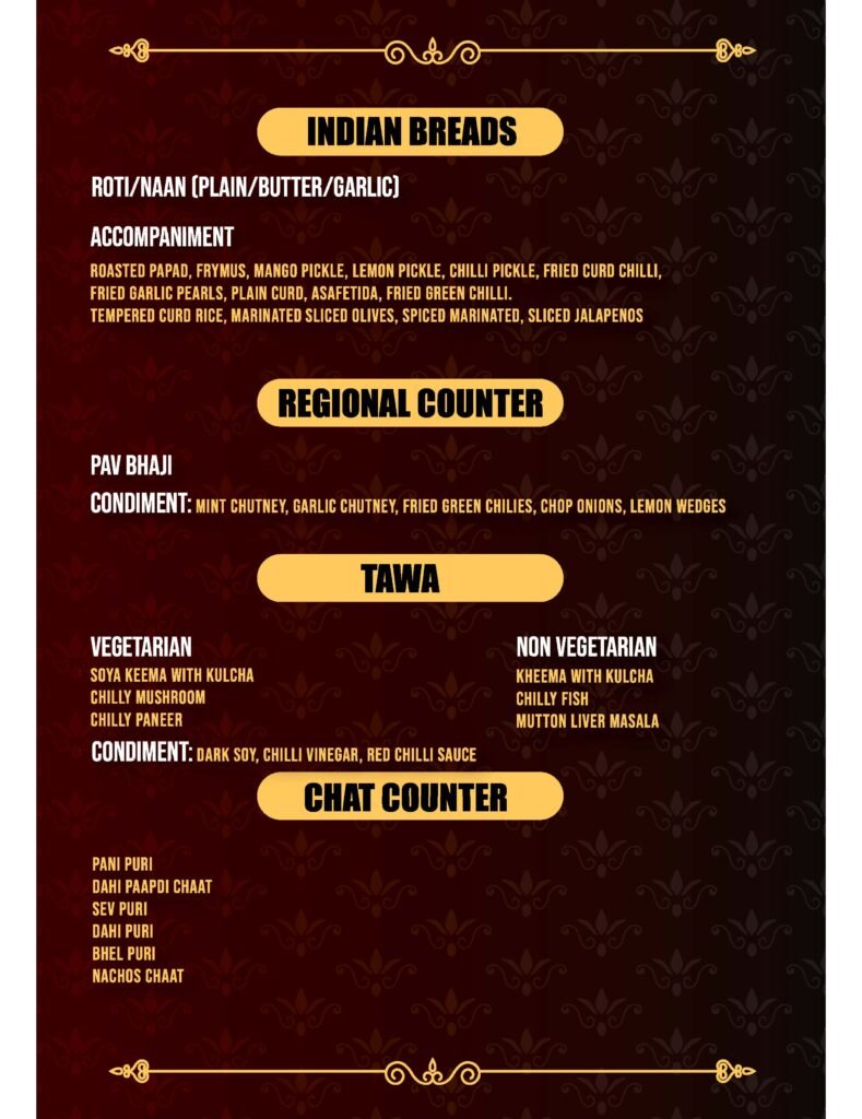 The menu shown here is for reference only and there may be changes in items served at the restaurant.